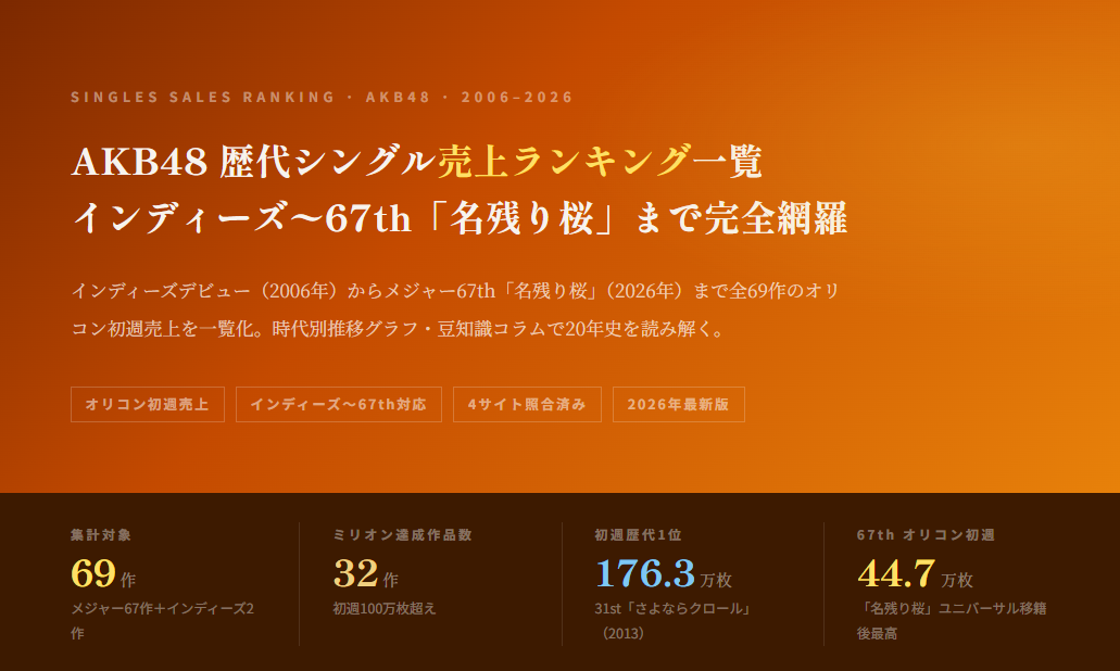 【データ・数値分析】 AKB48はなぜ乃木坂46に負けたのか。 再逆転はありえるのか。 ── 10年間の売上が示す設計思想の差