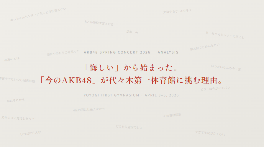 AKB48時代は選抜に選ばれることが少なく、「アイドルらしくない」と言われ続けた野呂佳代。卒業から13年、2025年ブレイク俳優ランキング女性1位。有吉の一喝、ゴッドタンの補欠抜擢、名探偵津田——三つの転機をたどりながら、なぜ今になってブレイクしたのかを考察する。